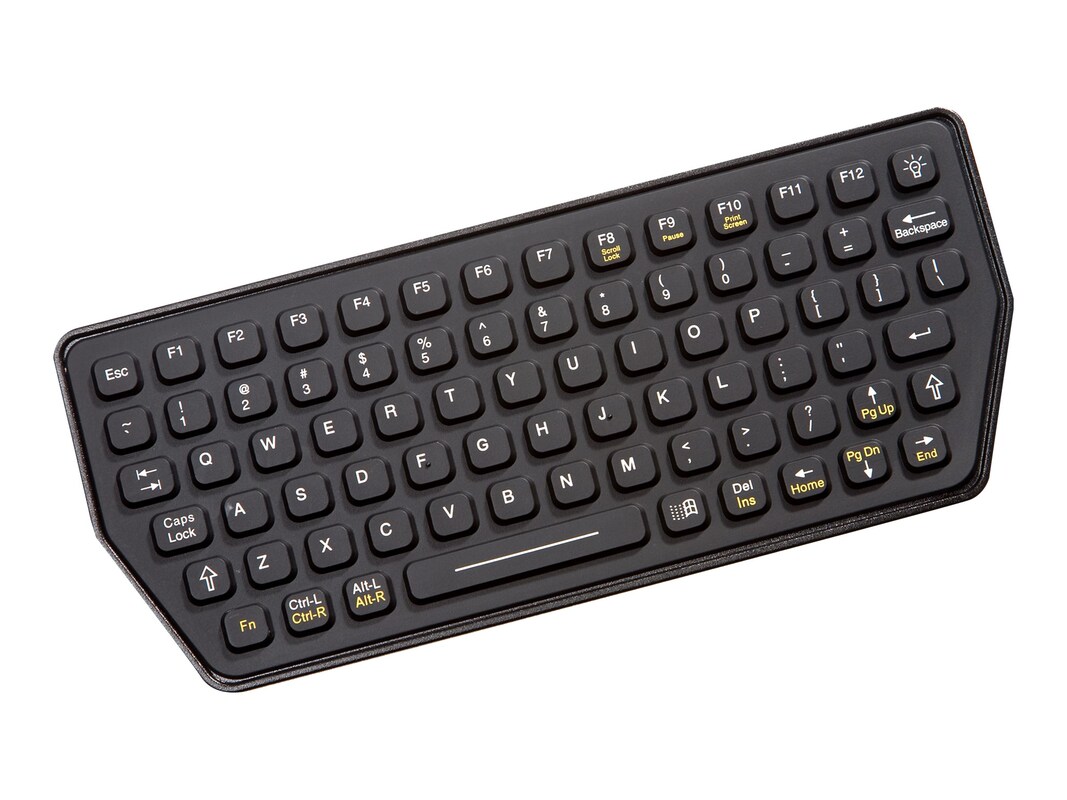 The compact SLK-77 keyboard is packed with functionality. It features a full QWERTY keyboard layout, 12 function keys, and red LED backlighting in a rugged ABS polycarbonate case measuring 9.27? x 3.87? (width-height). The SLK-77 is designed to meet NEMA 4X specifications, with a completely sealed industrial silicone rubber keypad that can withstand the dirt, dust, water and corrosives that often exist in harsh environments. It is an excellent keyboard for material handling, mobile and industrial applications.